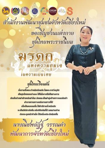 ขอเชิญชวนทุกท่านร่วมแต่งกายด้วยชุดไทยพระราชนิยม ทั้ง 8 แบบ