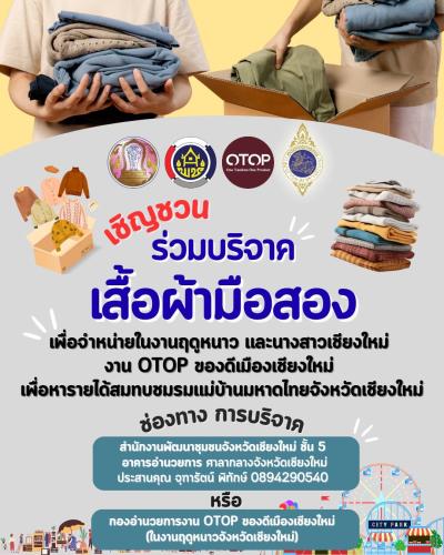 ร่วมบริจาคเสื้อผ้ามือสอง เพื่อร่วมจำหน่ายในงานฤดูหนาว และนางสาวเชียงใหม่ งาน OTOP ของดีเมืองเชียงใหม่