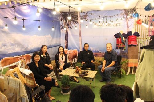 ในการนี้ นางสาวศศิธร ได้เยี่ยมชมบูธนิทรรศการภายใต้แนวคิด “อุ่นไอเชียงใหม่ เที่ยวได้ทุกวัน เสน่ห์วิถียั่งยืน (Chiang Mai, Every Day - Low Carbon City)” ซึ่งมุ่งเน้นการนำเสนออัตลักษณ์ชุมชนที่เป็นมิตรต่อสิ่งแวดล้อม โดยได้ชื่นชมผลงานหัตถศิลป์ที่เป็นอัตลักษร์ อาทิ ผ้าฝ้ายทอมือจากอำเภอต่างๆ งานงานแกะสลักไม้ ตลอดจนงานหัตกรรมต่างๆ รวมถึงผลิตภัณฑ์รสชาติแห่งขุนเขา ทั้งกาแฟ สินค้าเกษตรแปรรูป และอาการพื้นถิ่น โดยท่านรัฐมนตรีช่วยว่าการกระทรวงมหาดไทย ได้กล่าวให้กำลังใจผู้ประกอบการในการพัฒนาสินค้าให้ทันสมัย ควบคู่ไปกับการรักษาสิ่งแวดล้อมเพื่อสร้างรายได้ที่ยั่งยืนให้แก่ชุมชน