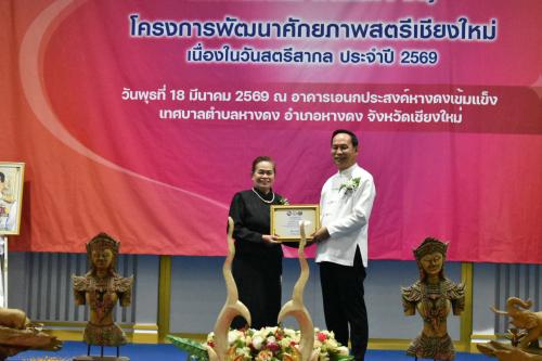 วันพุธที่ 18 มีนาคม 2569 เวลา 11.00 น. ณ อาคารอเนกประสงค์หางดงเข้มแข็ง เทศบาลตำบลหางดง อำเภอหางดง จังหวัดเชียงใหม่ นายบุญลือ ธรรมธรานุรักษ์ รองผู้ว่าราชการจังหวัดเชียงใหม่ เป็นประธานเปิดโครงการพัฒนาศักยภาพสตรีเชียงใหม่ เนื่องในวันสตรีสากล ประจำปี 2569 ซึ่งมีนางณิชพลัฏฐ์ วรรณคำ พัฒนาการจังหวัดเชียงใหม่ เป็นผู้กล่าวรายงานการจัดกิจกรรม โดยนางกัญญา ปัญญา รองประธานแม่บ้านมหาดไทยจังหวัดเชียงใหม่ ให้เกียรติเข้าร่วมกิจกรรม พร้อมด้วยหัวหน้าส่วนราชการระดับจังหวัดและระดับอำเภอ ซึ่งมีนายจักรินทร์ สิรินทรภูมิ นายอำเภอหางดงกล่าวต้อนรับ ผู้อำนวยการกลุ่มงาน พัฒนาการอำเภอ ภาคีเครือข่ายการพัฒนาชุมชน คณะกรรมการพัฒนาสตรีอำเภอ และผู้แทนสตรีจาก 25 อำเภอ เข้าร่วมกว่า 300 คน